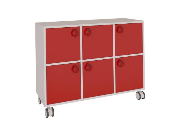 Armoire de rangement 6 portes idéale pour rangement de jouets dans les crèches, maternelle, école primaire, espace de sport.
